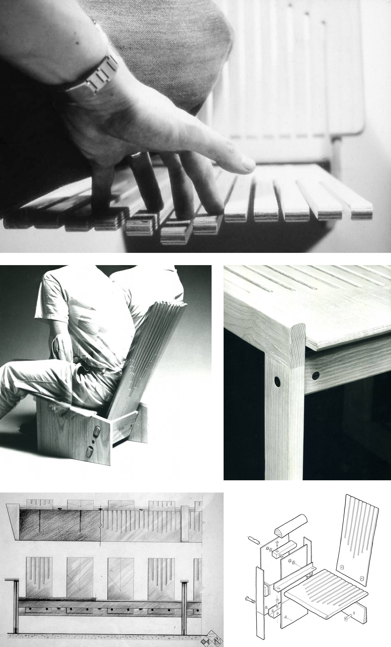 The Flexichair seating system was designed by Bob Pulley to be configured in a myriad of different ways. The chair has been specified by architects and designers and has been purchased by many private collectors. In 1990, Architect Les Koski specified Flexichair for the Liberal Jewish Synagogue in St John’s Wood. The seating system was developed and tested to meet exacting contract standards by the Furniture Institute Research Association (FIRA). Flexichair provides an ergonomically crafted seat and back support from rigid sheet material through the application of CNC machine technology.