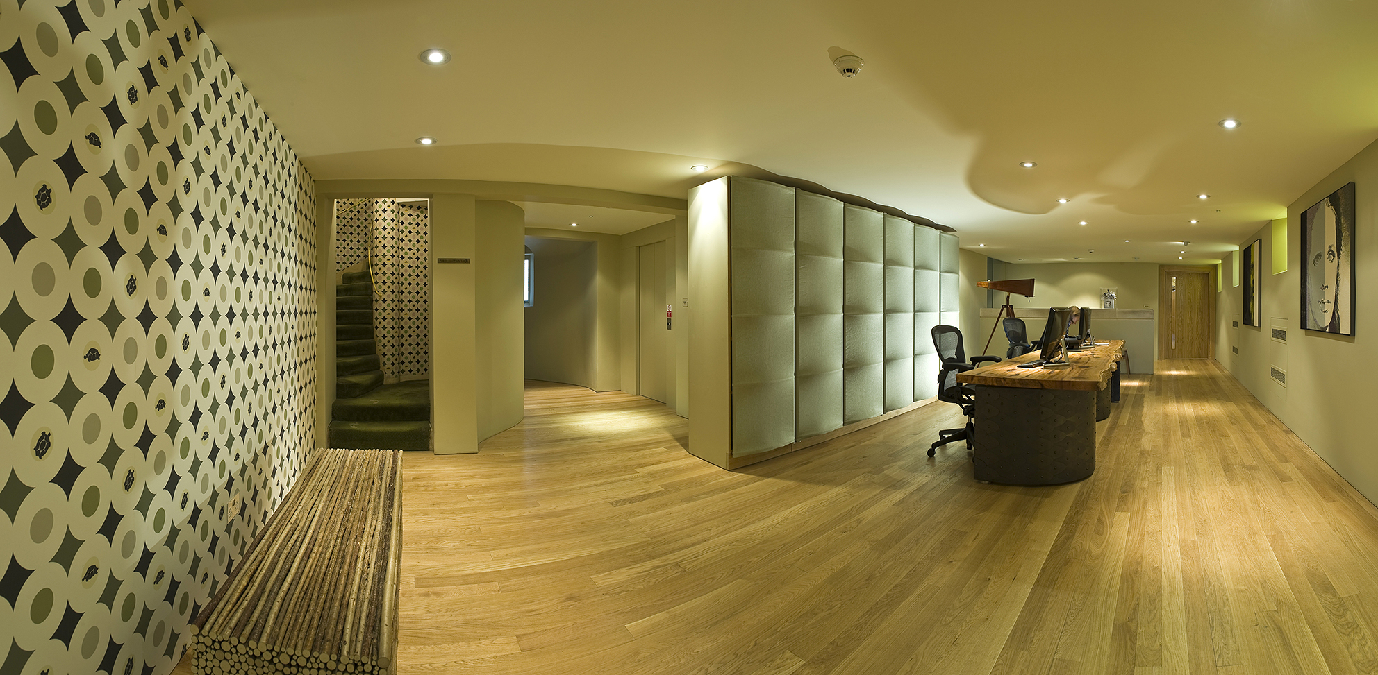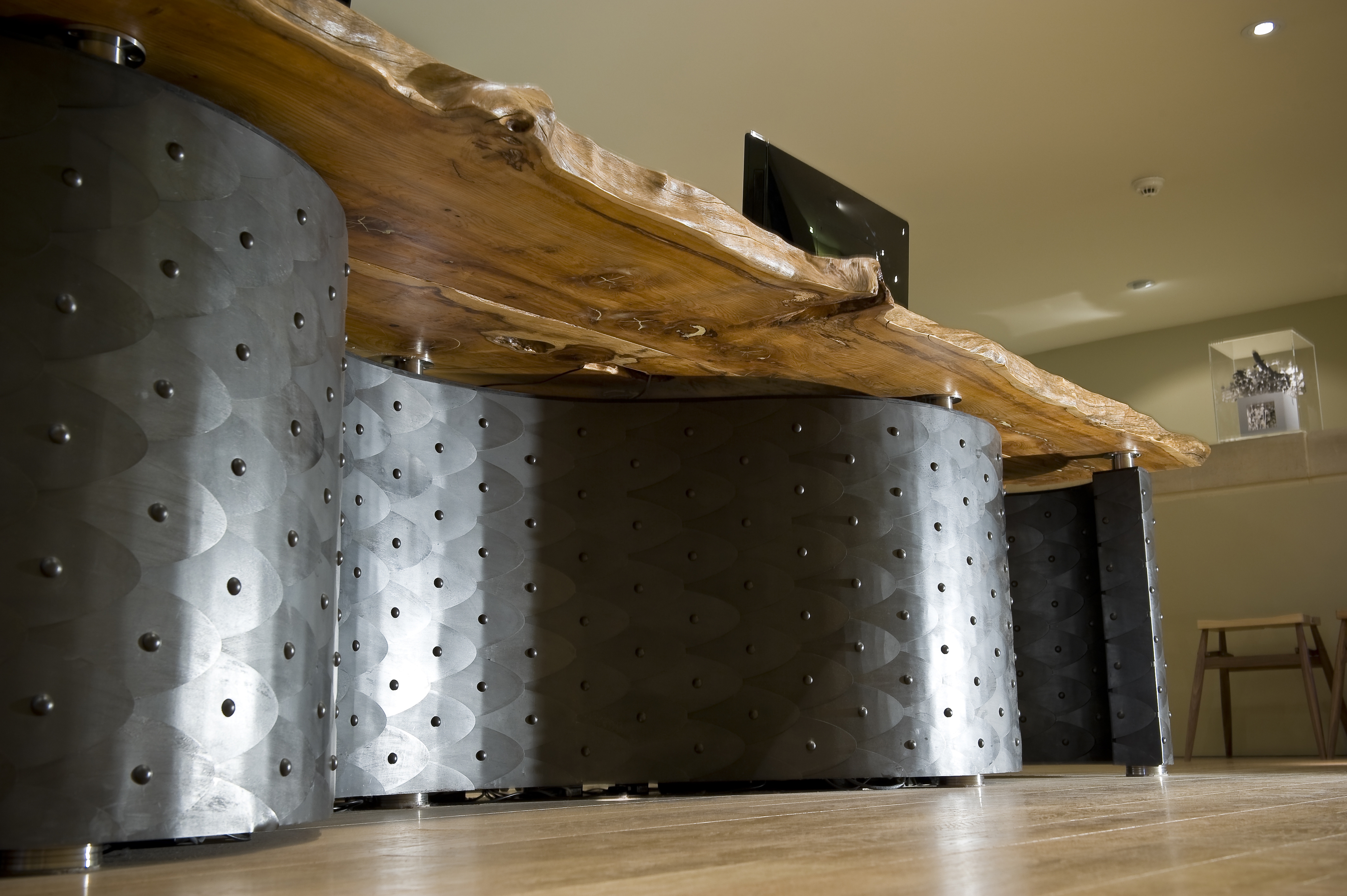 West Dean College reception area is designed to reflect the South Downs landscape through the materials and forms of its furniture. It contains a myriad of stories about the surreal life of its Founder, Edward James.